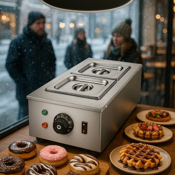 🍩 دارای ۳ لگن بن‌ماری سایز 1/6 برای نگهداری هم‌زمان چند نوع شکلات